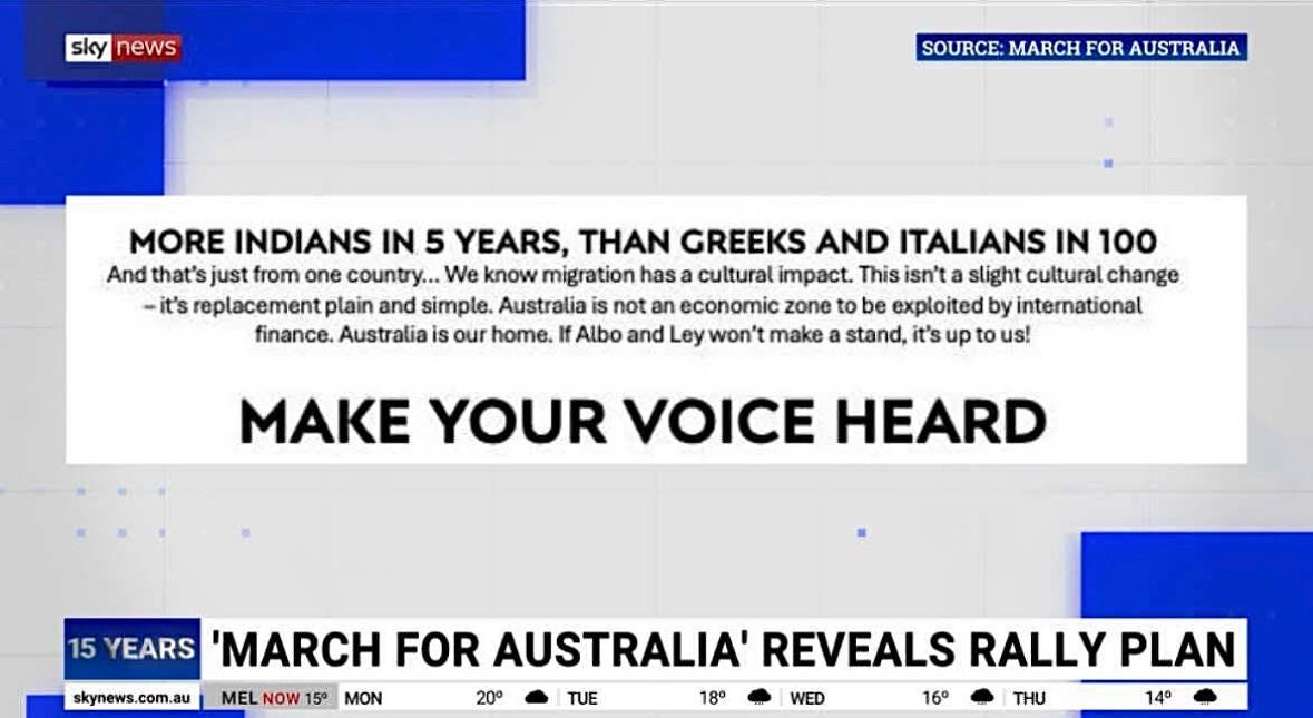It is time we faced the facts. Indian migration is unprecedented in both scale and pace. Pretending otherwise is not journalism. It is political cover. Political cover to hide this reality until it is too late to do anything about it. It is clear the Australian public won’t stand for this and if the reality they know is true is continually ignored by the political elite, the rallies we saw on August 31 will only be the start of the political storm to come.