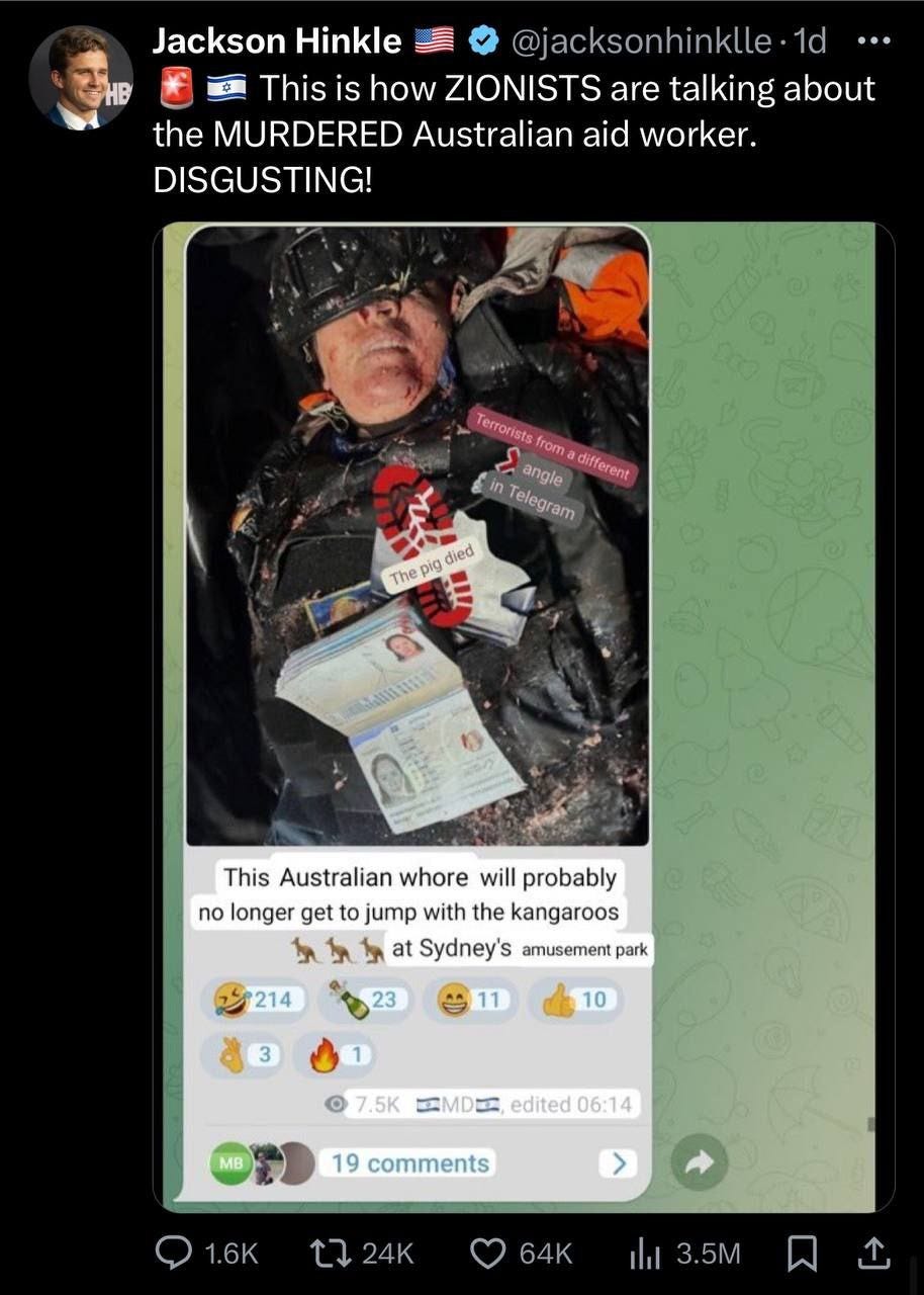 This week Zomi Frankom, an Australian civilian, was killed by the Israeli government. The 43-year-old charity worker was working alongside volunteers from the UK, US and Poland to distribute meals in Gaza when she was struck by a missile rained down upon her head by the Israeli Defence Force. Independent journalist Michael West rightfully shamed Netanyahuâs smirking apology video. Recent reporting states that the cars being used by the charity workers were clearly marked, and the IDF likely had advanced knowledge of their presence.